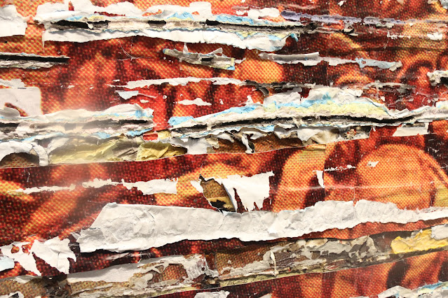 Agrandissement d'une toute petite partie du précédent. Il s'agit de papiers déchirés et encollés.